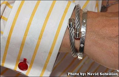 ابی بيست سال جوونتر از نکته های جالب ديگه ای که در برخورد نزديک با ابی متوجه شدم، دکمه سردست قرمز و دستبندهای نقره اش بود که دست جوونای بيست ساله ديدم. با يک گردنبند فلزی که علامت يک نوع دارو روش حک شده بود!