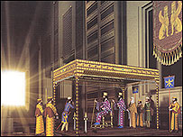 درخت در نزد هخامنشيان بالاتر از فقط يک عنصر تزئينی است. درخت در نگاه آنان دارای جايگاهی آيينی است چنانکه نوشته اند که در دربار ايران درخت چنار زرينی بود که هميشه در يک جا نگهداری می شد و آن را با گوهرهايی از بخش های مختلف سرزمين های ايرانی آراسته بودند. پادشاهان در زير اين درخت بارعام می داند و مردمان برای آن ستايش و نيايش به جای می آوردند. درست است که تخت جمشيد بر صفه ای از سنگ بنا شده است. اما برای معمارانی که چنان ستون ها و سقف ها و ديوارهايی را استوار بالا برده اند خاک ريختن به اندازه و ساختن باغ و باغچه کار دشواری نبوده است. حتی اگر وجود باغ و باغچه را به دليل ساختار سنگی تخت جمشيد نفی کنيم، که تصور آن بسيار دشوار است، نمی توان جايگزين های آن را مثل گلدان های بزرگ يا درختان مصنوعی و جواهر نشان نفی کرد. ضمن آنکه گرداگرد صفه می توانسته است به صف های درختان مقدس و آيينی مانند سرو آراسته بوده باشد. دشوار است بگوييم در تخت جمشيدی که آنهمه درختان سرو و نخل بر ديواره ها نقش شده است راهی برای حضور طبيعی درختان وجود نداشته است. مساله درخت آنچنان مهم است که برخی از محققان هر کاخ تخت جمشيد را که پر از ستون های بسيار است به باغ سنگی تعبير کرده اند. کاخهايی تهی از حيات کاخهای تخت جمشيد تنها با برآوردن ستون ها و سرستون ها و کشيدن سقفی بر آنها بازسازی شده است. در واقع بايد گفت کاخ ها تماما به سالنهای ستون دار سرپوشيده تبديل شده است و چيزی از زندگی در کاخ درآن ديده نمی شود. در واقع هيچ نوع تقسيم بندی داخلی در کاخها وجود ندارد. بنابرين بيننده می تواند از خود بپرسد که اين شاهان بزرگ قبل از اجرای يک مراسم يا بعد از خاتمه هر مراسمی کجا استراحت می کرده اند؟ اتاق کار و خواب آنها کجا بوده است. آيا کاخها اندرونی و بيرونی داشته است؟ گذشته از تقسيمات داخلی هر کاخ، هر يک از آنها دارای فضای سبز و آبدان و جای نشست و استراحت در باغ است. و گرنه از زندگی شاهی چيزی نمی ماند مگر بر تخت نشستن و ديگران را به حضور پذيرفتن. حال آنکه در تاريخ های هخامنشی گفته می شود که در تخت جمشيد حتی کتابخانه ای خاص آثار دينی وجود داشته است که نسخه ای از اوستا در دوازده هزار برگ نوشته بر پوست گاو از جمله کتابهايی بوده است که در آن نگهداری می شد. دربار در تاريکی نورپردازی درون کاخها نيز چنان است که درون هر کاخی به تاريکی ميل می کند و بسيار کم نور است. اينجا هم ممکن است گفته شود نوع معماری کاخها بيش از اين اجازه ورود نور به داخل را نمی دهد. اما مشکل از يک نگاه آيينی و اسطوره ای اين است که در فرهنگی که جدال نور و ظلمت اساس آن را می سازد نمی تواند محل جلوس شاه و بار عام او تاريک و کم نور باشد. هر نوع بازسازی ديجيتالی از آثار باستانی بجز داده های باستانشناختی - که هيچگاه کامل نيستند- بايد به عناصر اسطوره ای نيز به اندازه کافی بها دهد. مجموعه های معماری بازتاب دهنده مجموعه عقايد قوم نيز هستند و اين بخشی نيست که بتوان آن را ناديده گرفت. به عبارت ديگر فيزيک هر معماری از متافيزيک ويژه خود برخوردار است. در بازسازی ويرانه های باستانی توجه به متاقيزيک بنا کمک بسياری به تخيل متناسب می کند و چه بسا فقدان داده باستانشناختی را جبران خواهد کرد. الگوهای تخت جمشيد از نگاه باستانشناختی صرف هم ايراد اساسی در فيلم کم توجهی به الگوهای معماری تحت جمشيد است. شواهد متعدد در دست است که تخت جمشيد بر الگوی معماری ها و نقوش آشوری-بابلی-ايلامی ساخته شده است. فيلم در اين زمينه تقريبا ساکت است.