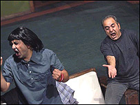 اين فوتبال دوستی در چند سال اخير در خانواده های ايرانی نيز به شدت رسوخ کرده است. تا جايی که در بازی های ملی حتی افراد مسن را اعم از زن ومرد را به خود مشغول می کند. حتی گفته می شود که پيروزی تيم ملی ايران بر بحرين درصدی بر مشارکت مردم در انتخابات اخير رياست جمهوری ايران موثر بوده است. رحمانيان پيش از اين نيز نمايشنامه هايی با شخصيت ها و فضای غير ايرانی نوشته است. مانند عروسکها و دلقکها در نيمه دهه ۶۰ خورشيدی که مورد استقبال قرار گرفته است. شايد انتخاب فضای غير ايرانی برای بعضی از داستان ها برای بيان محکم تر و روند داستان بهتر باشد. مانند داستان نمايش فنز که فوتبال نقش اساسی در آن دارد و انگلستان مهد آن است و هواداران انگليسی در اين زمينه زبانزد هستند. بازيگری در کارهای رحمانيان رکن اساسی است. همه اجزا و ارکان نمايش در خدمت بازيگر قرار می گيرد و در بازی بازيگران به چشم نمی آيند ضمن آنکه کار بازيگر و ارتباط او را با تماشاچی آسان می کند. حتی کارگردانی در اجرای نمايش و بازی بازيگران گم است. جذابيت بازی فوتبال و هيجانات جانبی آن و داستان ملموس آن برای تماشاچی ايرانی با بازی خوب بازيگران نمايش، سبب می شود که تماشاچيان به وجد بيايند. بازيگری