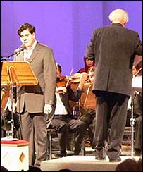 محمد قولوف، چنانکه از صدای تنور وی بر می آمد، تحصيلات آکادميک موسيقی دارد . او در کنسرواتوار چايکوفسکی در کلاس واسيلی کارين تحصيل موسيقی کرده و در باله و اپرا نيز فعاليتهای چشمگيری داشته است. اين خواننده ۶۰ ساله تاجيکستان در سال ۱۹۷۰ عنوان هنرمند ملی تاجيکستان را از آن خود کرد از سال ۱۹۹۲ پروفسور کنسرواتوار ملی تاجيکستان بود. قولوف در بخش دوم نيز تصانيف بخارا، محلی آذری و محلی ازبکی را بر روی ساخته هايی از طالب شهيدی خواند. قولوف اگر چه در کل تصويری از يک خواننده مسلط تنور را در منظر تماشاگران ايرانی به تماشا نهاد، اما در بخشهايی از اجرای خود، به خصوص در اجرای قطعه محلی آذری با ارکستر چندان هماهنگی نداشت، ضمن آنکه صدا برداری کار وی به مطلوبيت و شفافی صدابرداری صدای سالار عقيلی نبود. آثار طالب شهيدی نيز اگرچه رنگ و بويی تاجيکی داشت، اما اين رنگ و بو به دليل نبود سازی از منطقه تاجيکستان، به خوبی نتوانست توسط ارکستر انتقال داده شود. شهيدی که سال گذشته به عنوان رهبر ميهمان ارکستر سمفونيک ايران را هدايت می کرد، با استفاده از ملودی ها و اشعار مناطق تاجيکستان و ازبکستان و آذربايجان آثار متعددی ساخته که از جمله شاخص ترين آثار وی می توان ۵ اپرا و ۴ باله و آثار نمايشی چون رباعيات خيام، سياوش، شاه فريدون، يوسف و زليخا و آثار سمفونيک نام برد. تصنيفهای ايرانی
