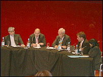 محمد حسين عادلی، سفير ايران در لندن ديگر سخنران ميزگرد عملاً در جبهه ای مخالف با ديگر شرکت کنندگان ميزگرد قرار داشت. در حالی که ديگران به نحوی در سخنان خود انتقاداتی متوجه سياستهای جمهوری اسلامی می کردند، او بناچار مسئول دفاع از سياستهای حکومتی بود که نمايندگی اش را به عهده داشت اما به جای آنکه درصدد پاسخگويی به انتقادات برآيد، بر اين نظريه پای فشرد که تلاش تاريخی ايرانيان برای دست يافتن به جامعه ای پيشرو و برخوردار از دموکراسی همواره بر اثر مداخله قدرتهای خارجی و بويژه بريتانيا با مانع مواجه شده و دليل اينکه ايرانيان هنوز به سطحی از توسعه يافتگی که انتظار می رود دست نيافته اند، دخالت قدرتهای خارجی است. آقای عادلی در عين حال اذعان کرد که جمهوری اسلامی در پرداختن به هويت ايرانی گاه عنصر مذهب را بر عنصرهای سنت ايرانی و تجدد ترجيح داده اما پاسخ او به انتقاداتی که در ارتباط با عملکرد جمهوری اسلامی در قبال حقوق بشر و آزادی می شد اين بود که جامعه ايرانی جامعه ای در حال توسعه است و رويدادهای انتقاد برانگيز در روند توسعه امری طبيعی است. او به اين واقعيت اشاره کرد که ايران اکنون نسبت به ده سال پيش از شرايط بسيار بهتری از نظر دموکراسی و آزادی بيان برخوردار است و پيش بينی کرد که ده سال بعد ايران در زمينه دموکراسی و آزادی بيان بسيار پيش رفته باشد. اينکه جامعه ايرانی در حال طی کردن روندی مثبت بسوی توسعه است، به نوعی مورد توافق شرکت کنندگان ميزگرد و جمع تماشاگران قرار داشت که در بحثها و اظهارنظرها شرکت داده شدند و در عين حال اين نگرانی بر جمع حکمفرما بود که رويارويی کنونی ايران و غرب و اينکه اين کشور نيز سرنوشتی چون افغانستان و عراق پيدا کند چه بر سر جامعه در حال توسعه آن خواهد آورد. اظهارات جان اسنو، مجری برنامه با استقبال حاضران مواجه شد که گفت تونی بلر، نخست وزير بريتانيا بايد به آمريکا اعلام کند که در همکاری در عمليات نظامی با آمريکا ديگر حاضر نيست از اين پيشتر برود مگر آنکه آمريکا باب گفتگو با ايران را بازکند. يکی از شرکت کنندگان سالخورده نيز گفت که سالها پيش به عنوان سرباز ارتش بريتانيا در خاورميانه خدمت می کرده و در آن زمان او و همقطارانش احترامی برای مردم خاورميانه قائل نبودند و اکنون آمريکاييها نيز در حال تکرار همين اشتباهند. |