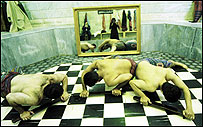 "زورخانه به نظرم خيلی جالب آمد و تصميم گرفتم يک کار عکاسی بکنم. نمی خواستم فقط از ورزش باستانی عکس بگيرم. بعد از چند بار که رفتم و آنها به من عادت کردند آن کاری که می خواستم کردم. يعنی آينه گذاشتم در گود زورخانه که خودم هم در عکس ها باشم." کارهای بهمن جلالی و رعنا جوادی شبيه هم و شبيه کارهای بسياری از عکاکسان ايرانی در سال های اخير است: يک عکس سياه و سفيد سالهای پيش که يک شاخه گل روی آن گذاشته اند و يک عکس رنگی از آن گرفته اند. مهران مهاجر هم سطرهايی از متون فارسی و عربی را روی صورت زنی سوپر ايمپوز کرده است.