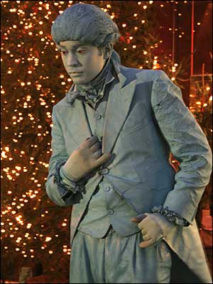 معرکه گيری که خود را به صورت مجسمه در آورده است