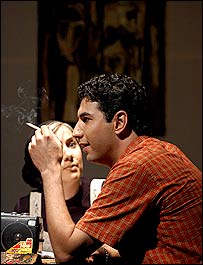 استفاده از تحرک دکور صحنه برای برش های سینمایی یا استفاده مشخص از ویدیو پروجکشن، در این نمایش در صحنه ای ثابت با استفاده از نور برش های سینمایی خود را در تئاتر اجرا می کند، ضمن آنکه هر صحنه یک تابلوی نقاشی را ترسیم می کند. مکالمه تلفنی باران در ما بین صحنه ها کار فلاش بک و فلاش فوروارد را انجام می دهد. از نظر ساختار درونی کارهای محمد یعقوبی گرایش به واقعگرایی دارد که دوست دارد مستندگونه باشد. حتی اگر داستان ساخته و پرداخته ذهنش باشد. حتی این مساله از نمايش "قرمز و دیگران" در بازی بازیگران دیده شد. در این نمایش و نمایش " تنها راه ممکن " این بازی ها به یکدستی قابل قبولی رسید. ناهید مسلمی درنقش لیلا بازی نرمی را ارائه می دهد. اگر چه به خاطر نوع نقش درگیری با دیگر آدمهای نمایش ندارد ولی با سرضرب های به موقع فضای خوبی ایجاد می کند. حالا محمد یعقوبی صاحب روش خاص خود در تئاتر ایران است. هرچند این نمایشنامه به قوت نمایش های دیگرش نیست ولی از نظر اجرایی پختگی بهتری نسبت به کارهای پیشین او دراین پنج سال اخیر دارد. شناسنامه " ماه درآب" نویسنده وکارگردان: محمد یعقوبی بازیگران: آیدا کیخایی ( آسودا)، ناهید مسلمی ( لیلا)، سعید چنگیزیان (بهرام)،آیلین کیخایی ( نگار)، روژین صدرزاده ( باران)، فهیمه امن زاده (آلما)، امیرحسین حسینی ( آروین)، علی سرابی ( مازیار)، شیوا ابراهیمی (صدای بزرگسالی باران) موسیقی: آیدین کیخایی - طراح صحنه: منوچهر شجاع - طراح لباس: فیروزه منجمی - طراح پوستر و بروشور: امیر اسمی - طراح چهره پردازی: افسانه قلی زاده - طراح نور: مجید ناخدا |