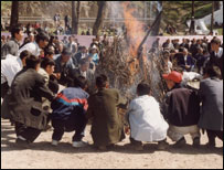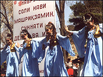 بر خوان نوروزی می گذارند. بر خوان نوروزی بکتاشی ها مانند سفره هفت سین ایران، "قرآن" می گذارند. چنانکه زرتشتی ها بر خوان نوروزی خود "اوستا" قرار می دهند. نوروز و امام اول شیعیان در حالی که بکتاشی ها، سلطان نوروز را به عنوان تولد امام علی جشن می گیرند، در افغانستان نوروز یا میله گل سرخ با برافراشتن بیرق (ژنده سخی) منسوب به این شخصیت مهم اسلامی پیوند می خورد. در بین شیعیان هند و پاکستان نیز این باور وجود دارد که امام اول شیعیان خلافت خود را در روز نوروز آغاز کرد. علاوه بر آن روایات مختلفی در مورد تقارن نوروز با اعیاد شیعه وجود دارد. پیوند با طبیعت تازه بیدار شده اگر مراسم تحویل سال و نوروز در ایران را که بیشتر در محیط خانواده برگزار می شود، مراسم خانگی نوروز بنامیم، سیزده بدر ایران که روز پیوند با طبیعت و روز گردش نوروزی است، مراسمی است که بطور دسته جمعی برگزار می شود. برای زرتشتیان روز 13 فروردین، "روزتیر" یا "تِشتَر" و روز فرشته باران است و آنها این روز را گرامی می دارند. در بسیاری از کشورها بر خلاف ایران نوروز طی مراسمی رسمی در خارج از خانه و غالبا در دامن طبیعت برگزار می شود. مراسم نوروز و جشن بهار در هر کجا و با هر نوع آیینی، بجز در هند و زنگبار با رستاخیز طبیعت همراه است. بی شک عامل ارتباط با طبیعت و باور و علاقه عمیق مردم برای برگزاری مراسم نوروز، راز پایداری این جشن در طول تاریخ پر فراز و نشیب سیاسی و اجتماعی منطقه بوده است. |