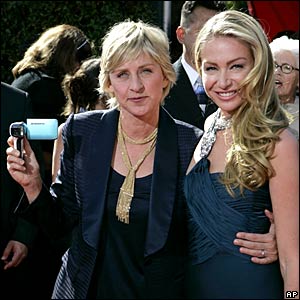 الن دی جنرس که مجری جوایز امی در سال 2005 و جوایز اسکار سال پیش را به عهده داشت، به همراه پورتیا دی روسی شریک زندگی اش در مراسم امسال حضور داشت.