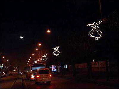 بعضی خیابان های شهر قونیه به خصوص خیابان های محل برگزاری مراسم سماع، با رشته های نورانی به شکل رقصندگان سماع، چراغانی شده اند.