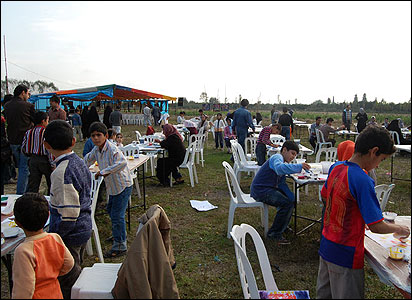 در پایان مسابقه همه روی کاغذی بلند نقاشی می کنند