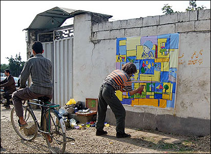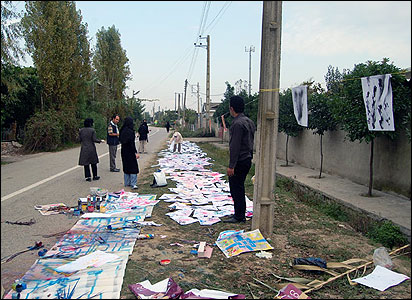 گروه حجم سبز مسیر منزل مکرمه قنبری را از ابتدای جاده با ریسمانی از نقاشی مشخص کرد