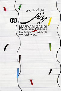 دوازدهمین نمایشگاه انفرادی عکس مریم زندی در گالری دی برپاست. در این نمایشگاه ۴۳ عکس در دو فضای مختلف به نمایش گذاشته شده است.
