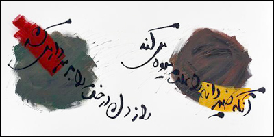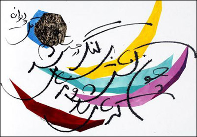 به مناسبت هشتصدمین سالگرد تولد مولانا خط نگاره های ابراهیم حقیقی از اشعار او با عنوان نقش ماه در آب، آذین بخش دیوارهای گالری
