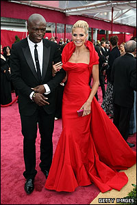 هایدی کلوم و سیل، در حال عبور از روی فرش قرمز. عبور از فرش قرمز، نمایش تازه ترین مدل های لباس و جواهرآلات طراحان شناخته شده است.