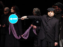 عدالت مورد نظر او کشتن آلفرد ایل است. این امر در ابتدا با مخالفت اهالی روبرو می شود ولی بعد از آن همه به نوعی برای از بین بردن آلفرد ایل به رقابت می پردازند که دامنه این کار حتی به خانه خود آلفرد ایل کشیده می شود. در نهایت انجمن محلی اورا به خاطر جرمش و احترام به عدالت و ارزش ها محکوم به مرگ می کنند. دورنمات واژه های ارزشی که در جوامع به کار برده می شود را خالی از حقیقت می داند و در این نمایش بیان می کند که چگونه فقر می تواند تمام ارزش ها را واژگون کند و تنها صورتی از آن به کار گرفته شود. حتی خود آلفرد ایل بخاطر فقر با کلارا ازدواج نمی کند و با دختر یکی از تجار شهر ازدواج می کند. اجرای ملاقات بانوی سالخورده اگر چه تماشا چی بسیاری را به سالن اصلی تئاتر شهر کشاند ولی این نمایش انتظاری را که از حمید سمندریان می رفت بر آورده نکرد. در انتخاب بازیگران اصلی با توجه به خیل تربیت یافتگان توسط خود او در عرصه حرفه ای، انتظار بیشتری از او می رفت. در اجراهای حمید سمندریان معمولاً حضور بازیگرانی دیده شده است که تربیت یافته خود او هستند و از توانایی بالای اجرایی برخوردارند ولی این بار یکنواختی در بازی ها و عدم توجه به جزئیات دیده می شد. اجرای آثاری مانند آثار دورنمات که از فلسفه و جامعه شناسی و مردم شناسی پر است، نیاز به توانایی های خاصی در گروه اجرایی در زمینه های مختلف دارد که پیش از این در آثار اجرایی حمید سمندریان دیده شده بود. در این نمایشنامه بازیگرانی چون گوهر خیراندیش، پیام دهکردی، احمد ساعتچیان، میرطاهر مظلومی، هوشنگ قوانلو، علی رامز، ژاله شعاری، فرخ نعمتی و... حضور داشتند و طراح صحنه ولباس این نمایش خسرو خورشیدی است و کیومرث مرادی که خود از کارگردان های جوان و پرکار سال های اخیر تئاتر ایران است به عنوان دستیار و مدیربرنامه ریزی با سمندریان همکاری دارد. عکس ها از سایت ایران تئاتر |