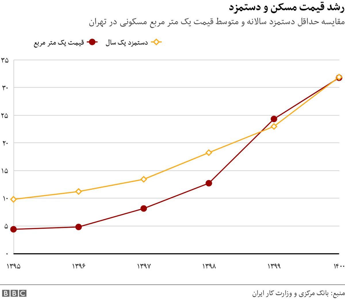 اگر یک کارگر ایرانی شاغل با حداقل دستمزد در سال ۱۳۹۵ میتوانست با تمام حقوق یک سالش در تهران دو متر مربع از خانهای را بخرد، در سال ۱۴۰۰ همان کارگر با تمام حقوق یک سالش فقط از عهده خریدن یک متر مربع خانه برمیآید.