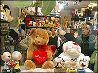 این خرس در اندازه های مختلفی است و گاهی آن قدر بزرگ است که در صندوق عقب اتومبیل هم جا نمی شود. خریداران عروسکهای شنی بیشتر پسرانی اند که می خواهند دوست داشتنشان را به دوست دخترانشان ثابت کنند. به گفته یکی از همین خریداران، والنتاین بیشتر یک روز پسرانه است و این پسرها هستند که به دخترها هدیه می دهند. جعبه های مقوایی که در سالهای اخیر مد شده است با رنگهای شاد، در اندازه های مختلف و اشکال جدید شبیه قلب با روبانی قرمز خواهان بسیاری دارد. بسته های کادویی که تا چندی پیش ایرانيها فقط در فیلمهای خارجی، پای درخت کریسمس دیده بودند، قیمت نسبتاً بالایی دارند. اگرچه این روزها به دلیل هوای برفی تهران و سوگواری محرم، شاید والنتاين به اندازه سال قبل پر رونق نباشد. یکی از فروشندگان بازار قائم از والنتاین سال گذشته با خاطره ای بد یاد می کند. او خود شاهد بوده که پارسال در همین روزهای نزدیک به والنتاین مأموران چند مغازه عروسک فروشی را به بهانه ترویج فرهنگ غرب بستند. گذشته از مشتريان هدايای والنتاين، خيليها هم از طريق اينترنت و با فرستادن کارت تبريک از طريق ای ميل، عيد عشاق را به هم تبريک می گفتند و در واقع، اينترنت را بايد يکی از عوامل اصلی رشد پديده والنتاين در ايران دانست.