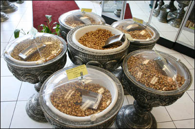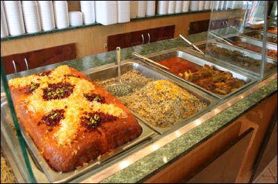 اگر بخواهيم سخن در باره سفره ايرانی را کوتاه کنيم بايد به جای شيرينی و تنقلات ايرانی روی ميز ايرانیان مهاجر نيز اشاره ای بياوريم. شيرينی و تنقلات، هم به دليل پيوند آن با مراسم خانواده ايرانی مانند جشن های عقد و ازدواج يا مراسم ملی آنها مانند نوروز، و هم به دليل پيوند آن با سنت مهمان نوازی ايرانی، جايی هميشگی در ميز مهمانی و جشن ايرانيان دارد. شيرينی های ايرانی معمولا از شهرهای تبريز وقم و يزد و اصفهان می آيد گرچه به اين شهرها محدود نيست. اما بسياری از مواد خشکبار ايرانی از شهرهای مختلف که به داشتن ميوه اصلی آنها شهره اند تامين می شود.