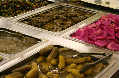 مرسوم شدن فروش غذای ايرانی به شيوه "بخر و ببر" (take away) از نشانه های آميختگی سليقه ايرانی با نيازهای جامعه جديد است که در آن غذای سرپايی يا بخر و ببر فراوان است. چنانکه در يک مورد هم يک ايرانی باذوق نام کباب را "برگر دراز" (long burger) گذاشته است تا رابطه نزديک تری با مشتريان خارجی خود پيدا کند. انواع شوری و ترشيجات و سالادها نيز از ديگر نشانه های سفره ايرانی است که در بازار ايرانی مهاجر عرضه می شود: