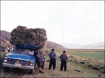 جمع آوری بسته های علوفه با اسب و..و انتقال آنها به نزديکی ماشين