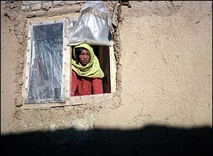 زنی در پنجره خانه روستايی، باميان، عکس از نادره ايوبی