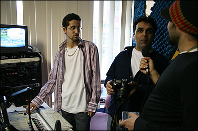 سکوت دفتر راديو "صدای روز" با ورود ما "بی بی سی ها" شکسته شد. کنار ميز و گنجه خانمی که مسئول بازاريابی و جور کردن آگهی برای راديو هستن ايستاديم و گرم صحبت شديم. آقای رضاوند سرپرست راديو از صبح اونجا بودن و تا ساعتهای ۹ تا ۱۰ شب هم قرار بود اونجا بمونن. البته برای من عجيب بود که چرا ما با خيال راحت گرم صحبتيم در حالی که آگهی و موسيقی که از راديو داره پخش ميشه داشت به ثانيه های آخرش می رسيد! پس چرا کسی پای ميکروفن نيست!!؟؟؟ خدا اين کامپيوتر رو از ما نگيره!