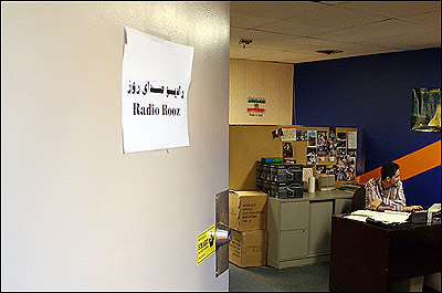 پس اين راديو کجاست...؟! برای پيدا کردن راديو صدای روز، ساعت ۷ بعد از ظهر پيچيديم توی يک پلازا ( فرعی بر خيابون با پارکينگ و مغازه). هيچ تابلويی نبود که نشون بده راديويی اونجا دفتر داره. از بيرون پنجره دکور استوديو رو که ديديم رفتيم بالا و ديديم که باز هيچ اسمی نيست جز يک در نيمه باز که صدای فارسی ازش شنيده می شد. صدای يک نمايشنامه!