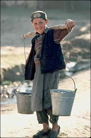 صدف آريان:  پسرک افغان در حال حمل آب |