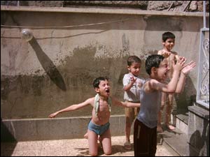 هومن خوشوقت:  کودکان در اين شب تابستانی گرمشان است اما به جز آب بازی چه می شود کرد؟!، تهران |