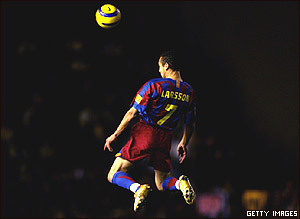 هنريک لارسون از تيم بارسلون در ليگ فوتبال اسپانيا در مسابقه با تيم کاديز در ورزشگاه کارانزا