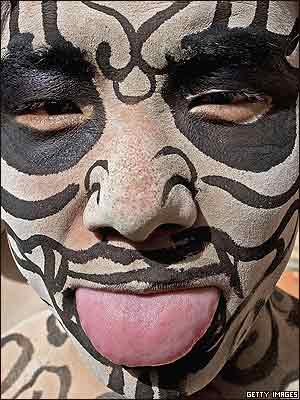 چهره مردی از نژاد اقليت ‘تو‘ در مراسم سالانه ووتو در شمال غربی چين: اين مراسم سالی يکبار به مناسبت دور کردن شيطان از اين دهکده توسط هفت مرد قوی که با رقص ووتو و پوشاندن صورت با خاکستر و نقاشی برگزار می شود. مردم اين دهکده نان و گوشت سيخ شده به ووتوها می دهند، هر چه ووتوها بيشتر بخورند برکت دهکده در آن سال زياد خواهد شد. آخر اين جشن با شستشو در رودخانه به اعتقاد شستشوی شيطان از بدن به پايان می رسد.