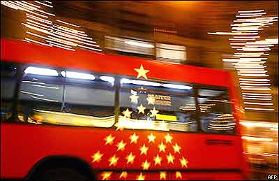 کريسمس در شهر بيلبائو: اتوبوسی تزيين شده برای جشن های کريسمس در سطح منطقه باسک در شمال اسپانيا عبور می کند.