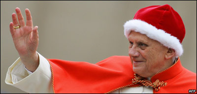 پاپ بنديکت شانزدهم با لباس بابانوئل در ميدان سنت پيتر در ديدار هفتگی با ملاقات کنندگان