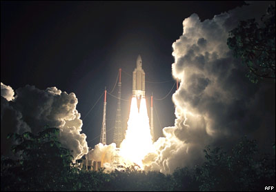 پرواز آريان پنج - وی 169 از گينه فرانسه: سنگين ترين ماهواره هندوستان که به منظور استفاده در مخابرات و رسانه ها به فضا پرتاب می شود. وزن اين ماهواره سه هزار و 80 کيلوگرم است .