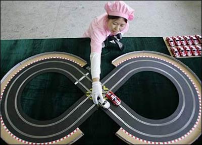 در زير مجموعه عکس مراحل تهيه تا پخش يک اسباب بازی اتومبيل مسابقه با پيست مخصوص آن را دنبال می کنيم: