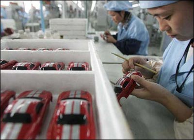 بعد از ظهر، اسباب بازی های توليد شده قبل از بسته بندی برای کنترل کيفيت آماده می شوند. هی زیان فنگ می گويد: 'با اين که چشمانم از نگاه کردن به گردش ماشين ها دور پيست خيلی خسته می شود اما از کارم راضی هستم و آرزو دارم يک روز به سفر بروم و بچه هايی را که با اين اسباب بازی ها بازی می کنند ببينم.