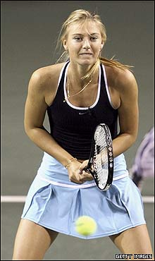 ماريا شاراپووا، تنيس باز روس در جريان يک مسابقه دوستانه در توکيو. |