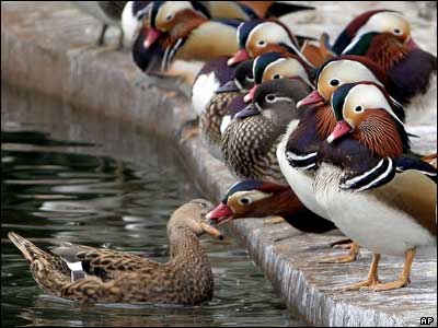 مرغابی ها در حال استراحت در يکی از باغ وحش های چين: دولت چين قصد دارد یک ميليارد واکسن برای جلوگيری از آنفولانزای مرغی در اختيار دامداران بگذارد.