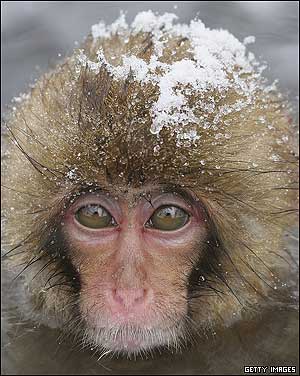 ميمون های ژاپنی موسوم به 'ماکاک' در چشمه آب داغ در منطقه جيگوکودانی ژاپن که امسال در آن برف بی سابقه ای باريده است. از اين ميمون ها با نام ميمون های برفی هم ياد می شود. در سال 1963 يک ماکاک ماده برای گرفتن چند دانه لوبيای سويا وارد اين چشمه آب داغ شد. اين رفتار را ساير ميمون ها تقليد کردند و سرانجام همه جمعيت اين ميمون ها اين کار را ياد گرفتند. اکنون آنها برای فرار از هوای سرد خود را به آب داغ چشمه می زنند. گفته می شود که آب اين چشمه برای درمان دردهای عصبی و خستگی مفيد است.