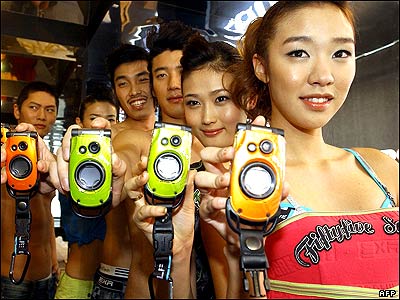 تلفن همراه ضدآب: چند مانکن در کره جنوبی در حال نمايش اين نوع تلفنی همراه