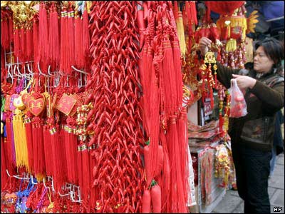 تزئينات سنتی چينی به مناسبت سال نو در چين، که روز بيست و نهم ژانويه امسال درآن کشور برگزار می شود. امسال در چين سال 'سگ' نامگذاری شده است
