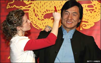 مجسمه مومی 'جکی چان' که به طور موقت در موزه مادام توسو در لندن به مناسبت سال نو چينی ساخته شده است. قرار است که مجسمه 10 شخصيت چينی ديگر هم وارد اين موزه شود.