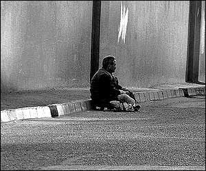 مهدی آقا جانی | | خيابان فرشته در شمال تهران، که قرار است يکی از شيکترين! خيابانهای تهران باشد. اين مرد فقير همه روزه در اين خيابان گدايی می کند |