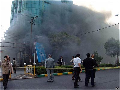 انفجار در اهواز و تلاش ماموران آتش نشانی برای خاموش کردن آتش. اين انفجار تعدادی کشته و زخمی بر جای گذاشته است.