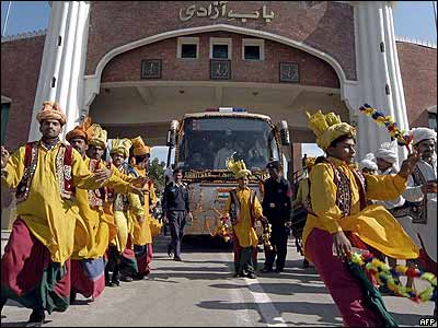رقص محلی پاکستانی (بانگرا) به مناسبت ورود اتوبوس از آميريتسار به لاهور. از هنگام آغاز روند صلح در ژانويه سال 2004 بين هند و پاکستان اين اتوبوس سومين خط ارتباطی زمينی بين دو کشور بود.