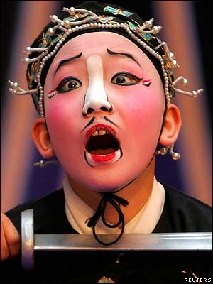 تلاش سنگاپور برای رونق بخشيدن به بازار خرده فروشی در آستانه سال نوی چينی: اين پسربچه چينی عضو گروه اپرای پکن و در حال اجرای برنامه در سنگاپور است.