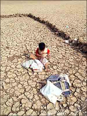 پسر کوچک هندی که خانواده اش نمک طعام توليد می کنند در حال درس خواندن. توليد کنندگان نمک در شهر احمد آباد ايالت گجرات هند دسترسی به آب آشاميدنی، آموزش و پرورش و خدمات بهداشتی ندارند |