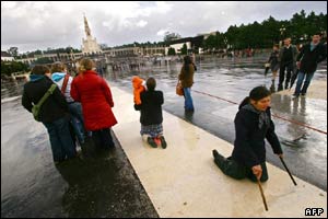 عبادت کنندگان روی زانو به سمت کليسای فاطيما در 120 کيلومتری شمال ليسبون حرکت می کنند. انتظار می رود بيش از 250 هزار کاتوليک در مراسم روز يکشنبه در کشور پرتغال شرکت کنند.