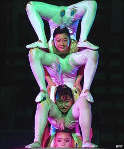 آکروبات بازهای چينی در سيرکی در کلمبو. بزرگترين سيرک چينی در چهل سال اخير، از اول تا 25 فوريه در سری لانکا برنامه اجرا می کند. اين برنامه برای کمک به کودکان خيابانی برگزار شده است.