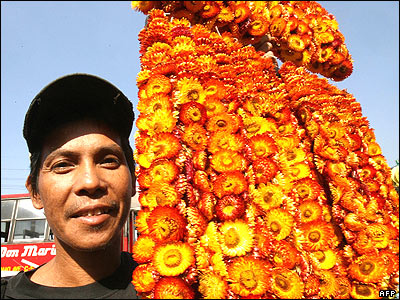 گل فروشی در شهر مانيل فيليپين . اين گل فروش روزانه شش دلار عايدی دارد.