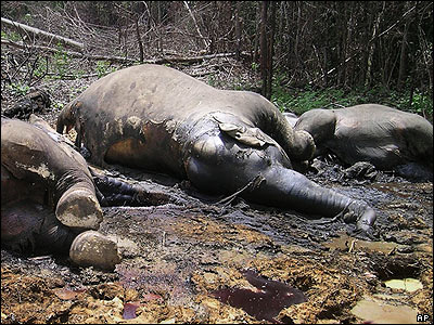 سه فيل از نژاد فيل های وحشی که در حال انقراض هستند توسط سيانيد پتاسيم در استان رياو اندونزی مسموم و کشته شده اند. مسئولين صندوق جهانی حمايت از حيوانات رو به انقراض، گفته اند به نظر می رسد که اين حيوانات عمدا کشته شده اند.