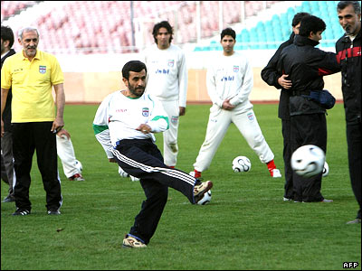 محمود احمدی نژاد در آخرين تمرين تيم ملی فوتبال ايران برای انجام ديداری دوستانه مقابل تيم کاستاريکا. رئيس جمهور ايران امروز برای يک سفر رسمی عازم کوالالامپور، پايتخت مالزی شد.